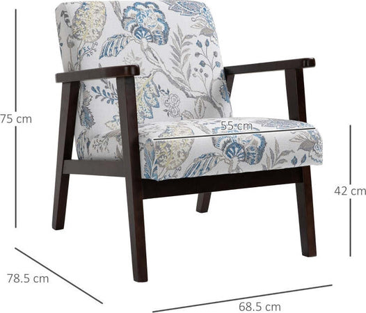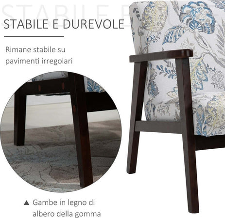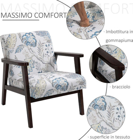 Sedia per Soggiorno Poltroncina Imbottita con Braccioli in Legno e Tessuto Traspirante per Casa e Ufficio, a Fiori, 68.5x78.5x75cm poltrona soggiorno salotto camera studio F835-288A