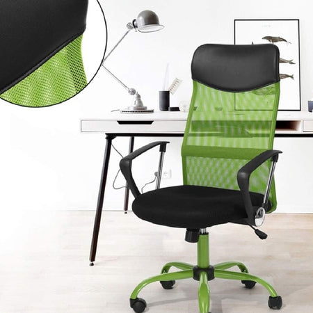 Sedia Poltrona da Ufficio Base 5 Ruote con Regolazione Traspirante Schienale Alto Nero Verde