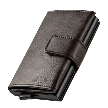 SEI G portafoglio portacarte in vera pelle marrone SEIG80001. Portafoglio compatto ed elegante con: Blocco RFID, innovativo grilletto di accesso rapido carte, tasca per banconote