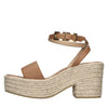 Sandali in pelle. Tacco in rafia. Suola esterna in gomma. Tomaia interna in pelle logata. Plateau: 4cm.
