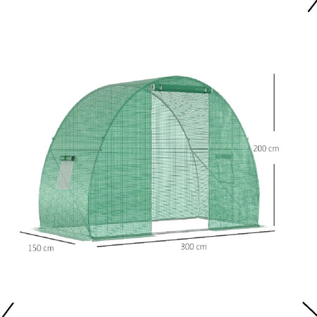 Serra a Tunnel per Orto 1.5x3x2m, Porta Avvolgibile e Finestre, con Copertura (Verde)