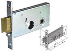 Da infilare, scrocco reversibile a 1 mandate, profilo 16 mm., finitura acciaio zincato. Cilindro non in dotazione. (cilindro base 54 mm.)