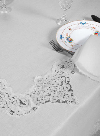 Servizio da tavola da 12 posti con pizzo rebrodè 100% lino art.Incanto