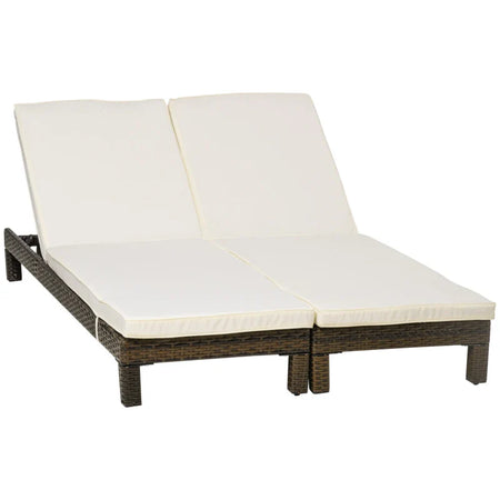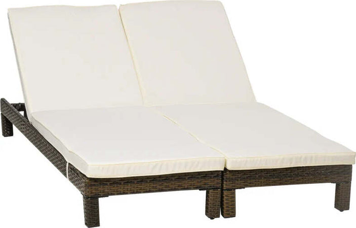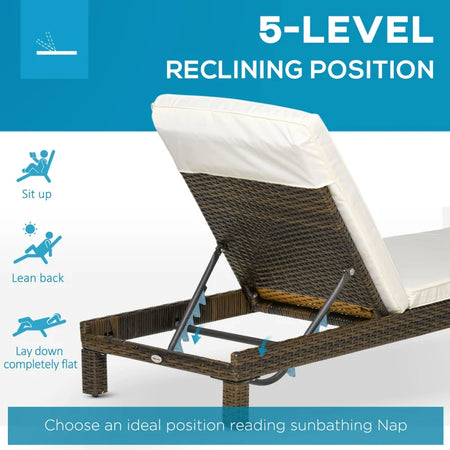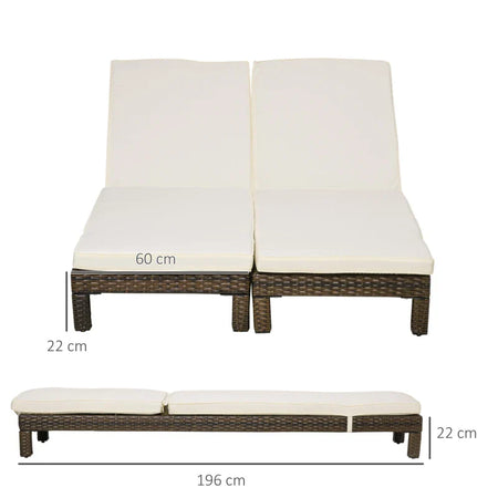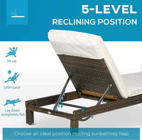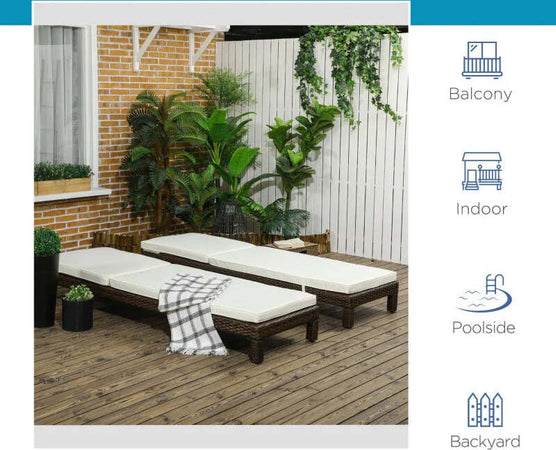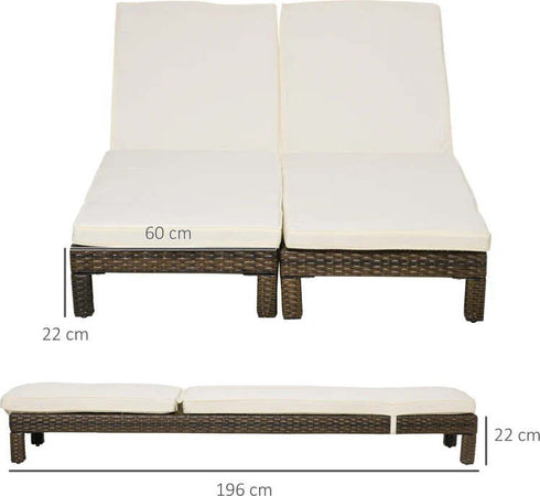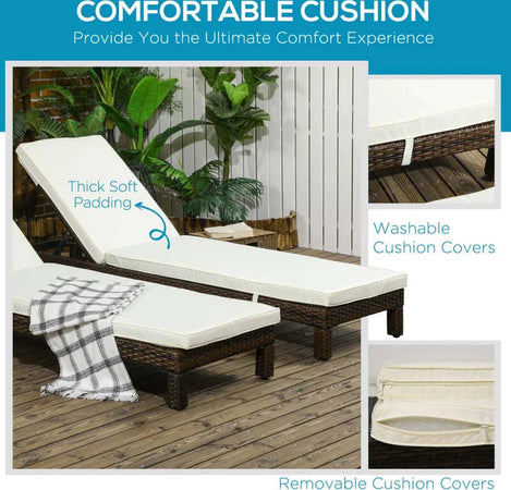 Set 2 Lettini Prendisole in Rattan PE con Cuscino e Schienale 5 Reclinazioni, 196x60x22cm 862-019V00BN
