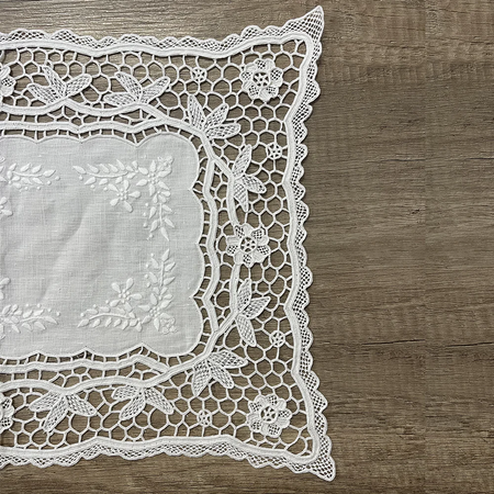 Tessuto in Puro Lino Ricamato a Mano Applicazione di Burano