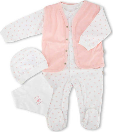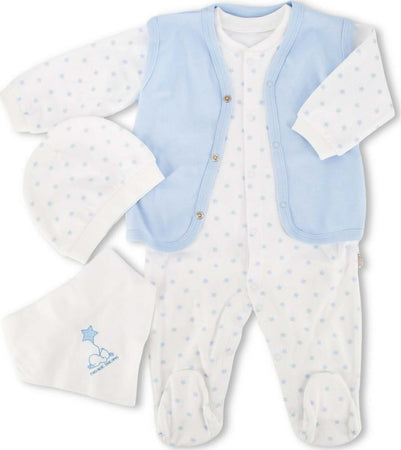 Set 4 Pezzi Neonato Baby Irge Per Bimbo O Bimba In Cotone Organico Da 1 A 9 Mesi Con Tutina, Cardigan Cappellino E Bavaglino
