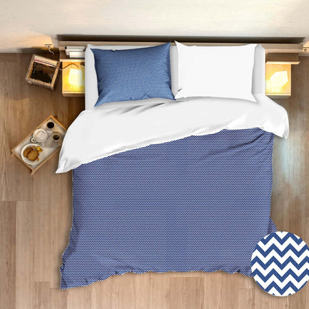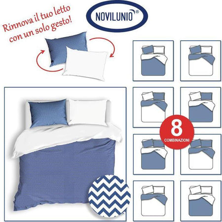Set Copripiumino E Federe Bifaccia Doubleface Parure Copripiumino Stampa Digitale 100% Cotone Made in Italy Zig Zag Blu Diverse Misure Novilunio