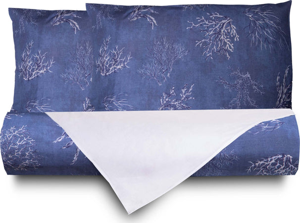 Set Copripiumino Federe Bifaccia Doubleface Parure Copripiumino Stampa Digitale 100% Cotone Made In Italy Oceano Blu