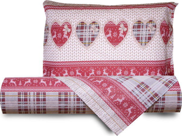 Set Copripiumino Federe Letto Parure Copripiumino Stampa Fantasia 100% Cotone Made In Italy Cuori Country