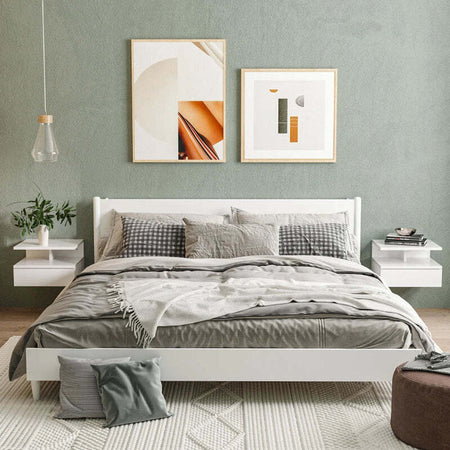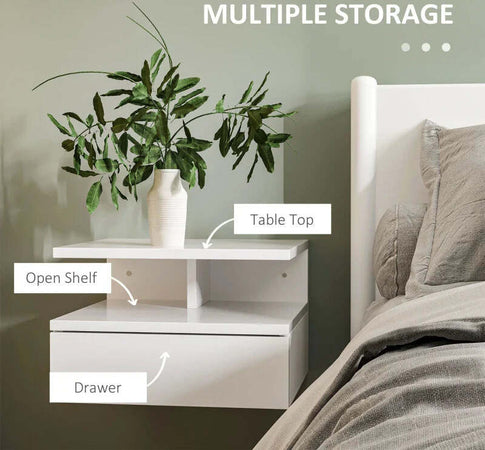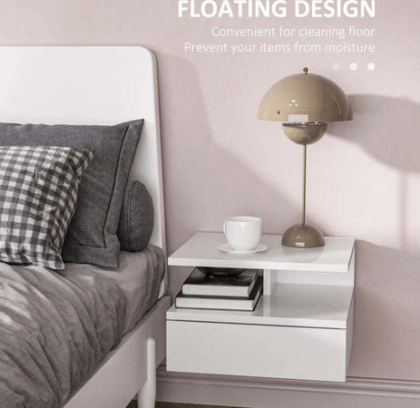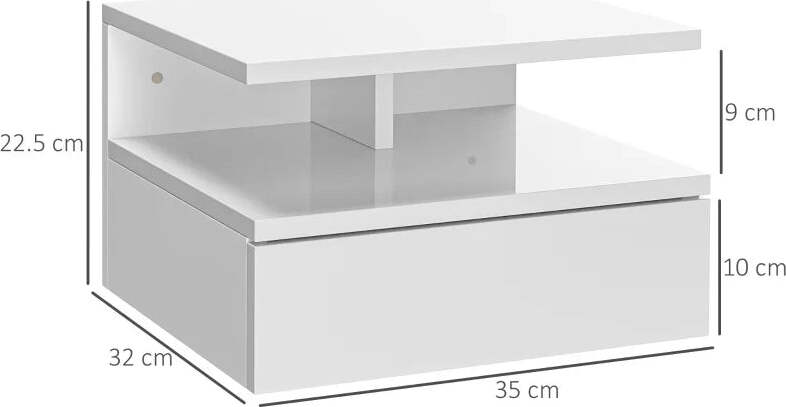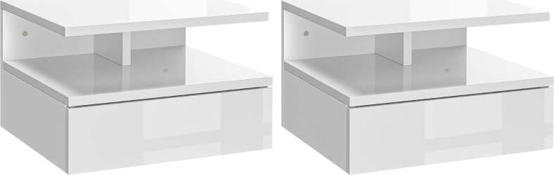 Set da 2 Comodini Moderni Sospesi con Cassetto e Mensola in Legno 35x32x22.5cm, Bianco Lucido GH7831-338V00WTGH7