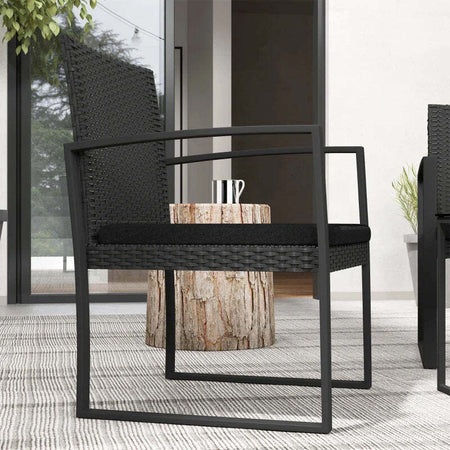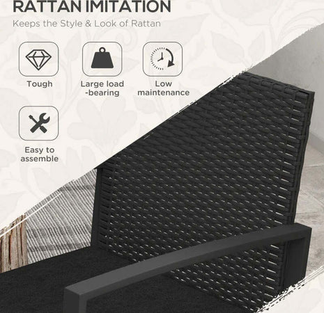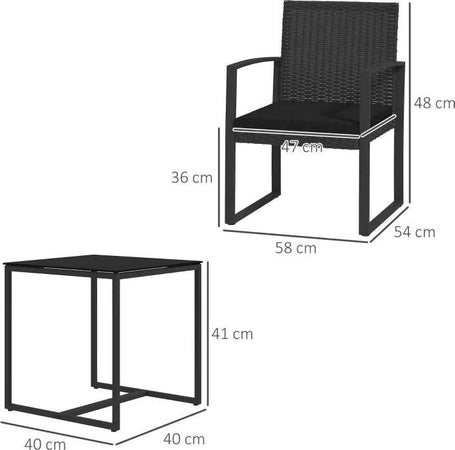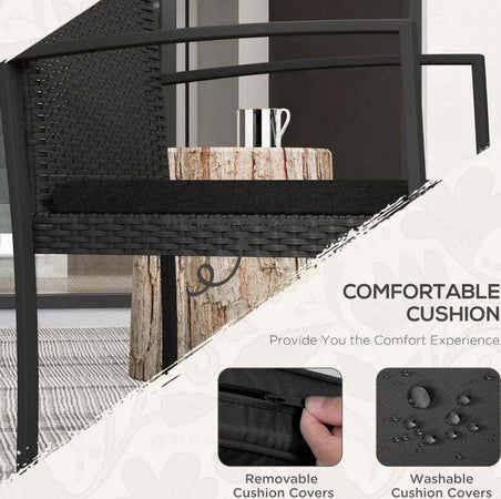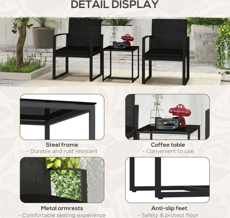Set da Giardino 3 Pezzi con 2 Sedie con Cuscini e Tavolino con Piano in Vetro, Effetto Rattan Nero 84G-320V00BK