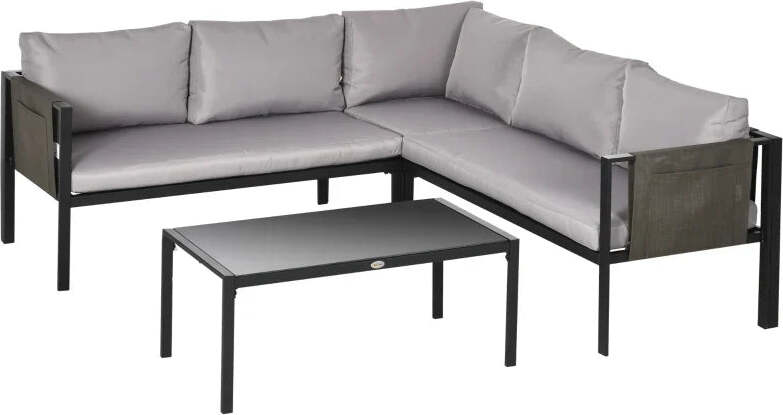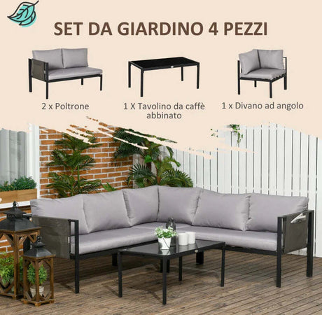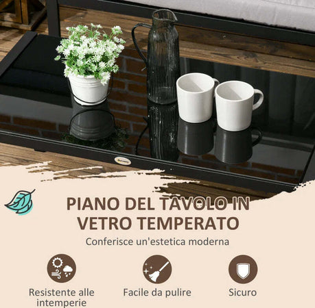 Set da Giardino 4 Pezzi con 2 Divanetti, Poltrona Angolare e Tavolino da Caffè in Vetro Temperato 84G-049V00LG