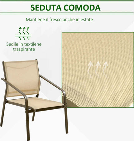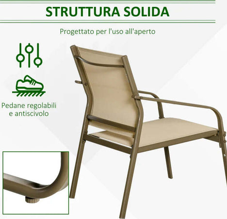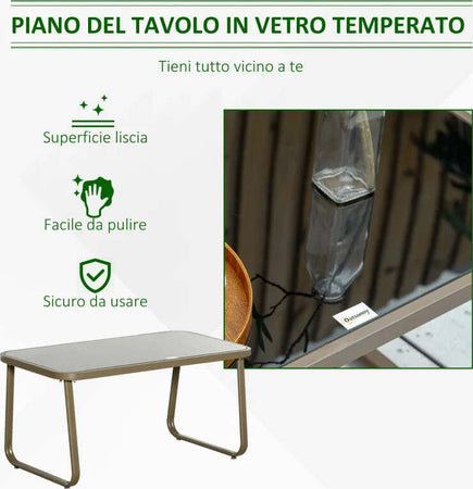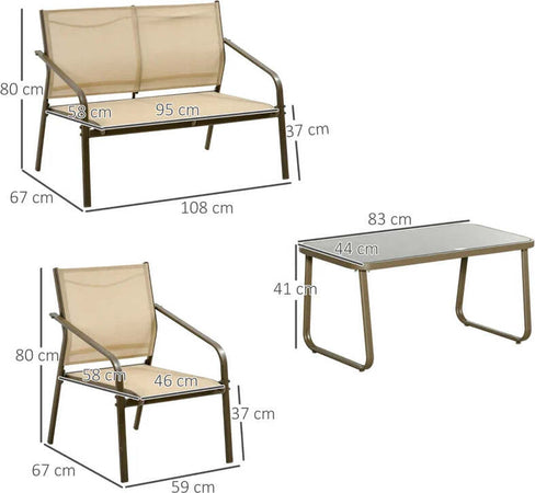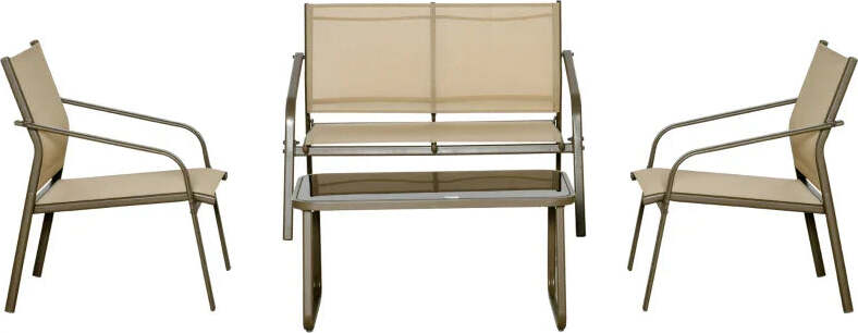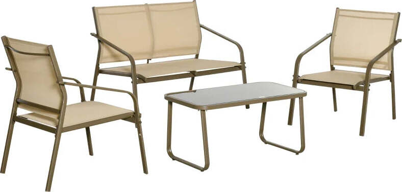Set da Giardino 4 Pezzi con 2 Sedie, 1 Divanetto e 1 Tavolino da Caffè, Kaki 84B-935