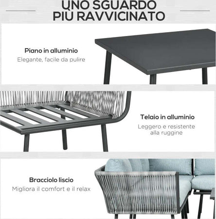 Set da Giardino 4 Pezzi in Rattan con Tavolino da Caffè, 2 Divani ad Angolo e Poltroncina, Nero Grigio e Blu 860-275V00GY