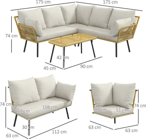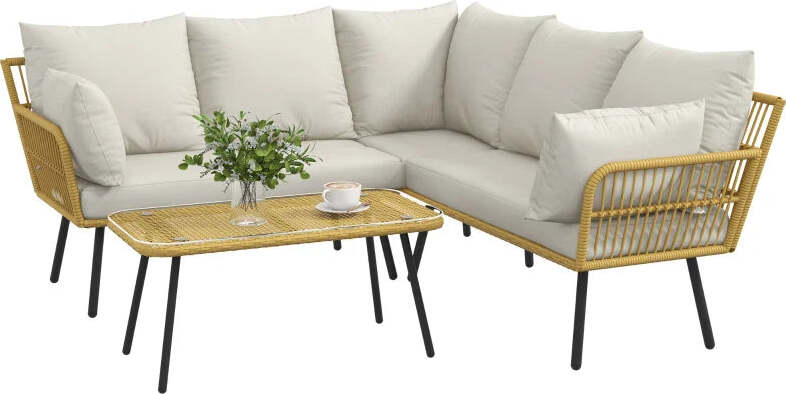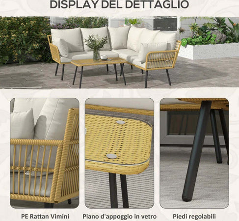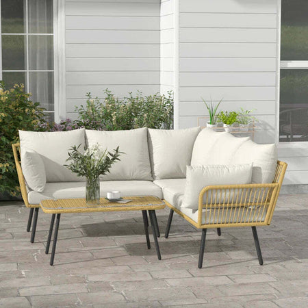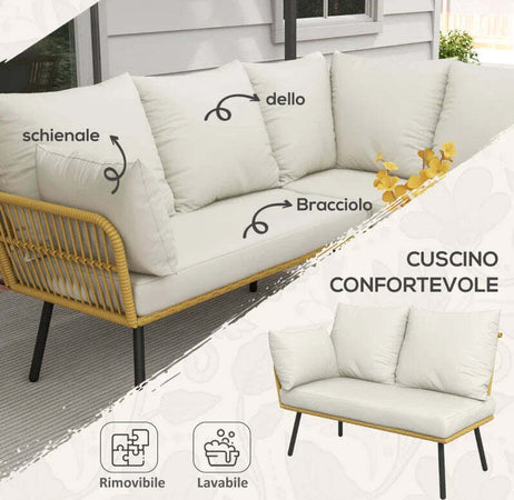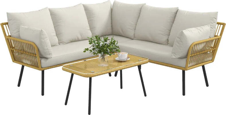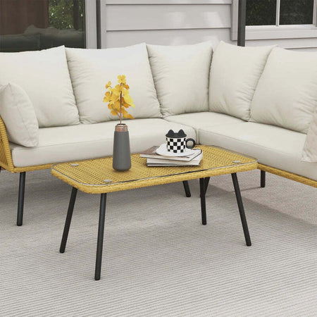 Set da Giardino 4 Pezzi in Rattan PE con Tavolino da Esterni 90x45x42 cm e 2 Divanetti per Esterni 6ex63x74 cm, Bianco Crema 860-324V00CW