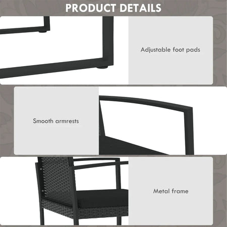 Set da Giardino con 2 Sedie, Divanetto e 2 Tavolini con Cuscini e Piano in Vetro, Nero 84G-319V00BK