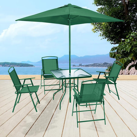 Set da Pranzo 6 Pezzi per Giardino Patio con Ombrellone 4 Sedie Pieghevoli Verde