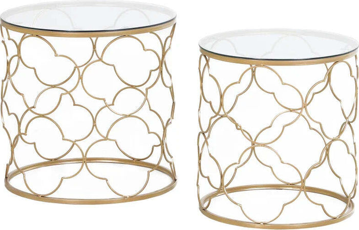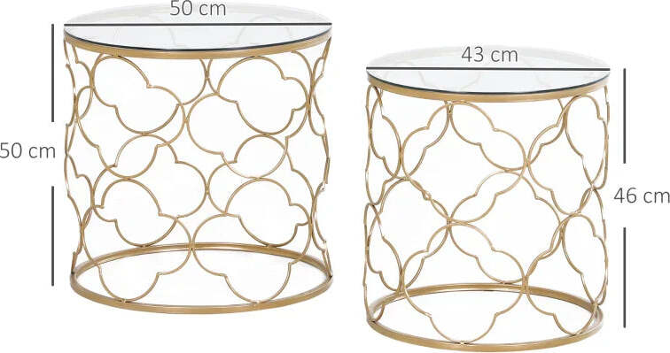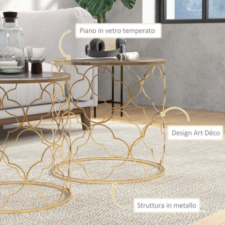 Set 2 x Tavolino da Salotto vetro e acciaio , colroe Oro TG6833-675TG6 , soggiorno salotto basso nero bianco marrone grgio design moderno sala moderno alto divano camera legno vetro rotondo