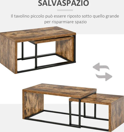 Set 2 x Tavolino Salvaspazio in Stile Industriale Legno MDF e Metallo Marrone e Nero CF9839-082CF9 , soggiorno salotto basso bianco grgio design moderno sala moderno alto divano camera vetro rotondo