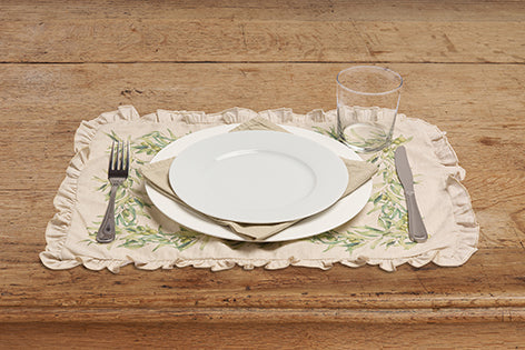 Set di 2 tovagliette americane colazione con decorazione frou frou coppia tovagliette 35 X 50 CM in misto lino stampa floreale fiori morbide resistenti eleganti made in italy ULIVO