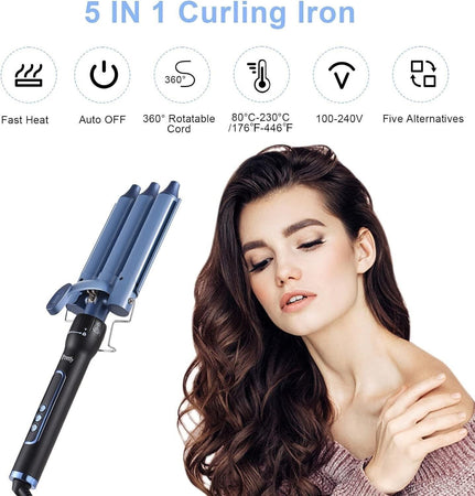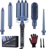 Set di bacchette arricciacapelli 5 in 1 con ferro in ceramica da 9mm-32mm, ondulatore a 3 cilindri, spazzola per lisciare i capelli, temperatura regolabile LCD 80-230°C