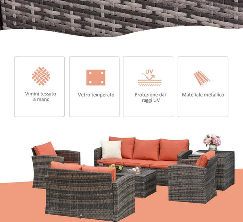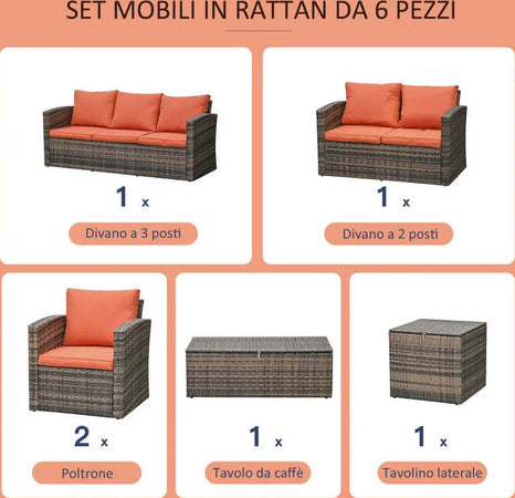 Set Mobili da Giardino 6 Pezzi in Rattan con Divani, Poltrone e Tavoli Contenitore, Marrone 860-120
