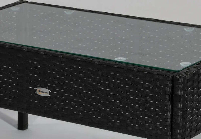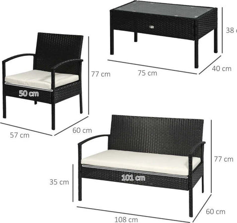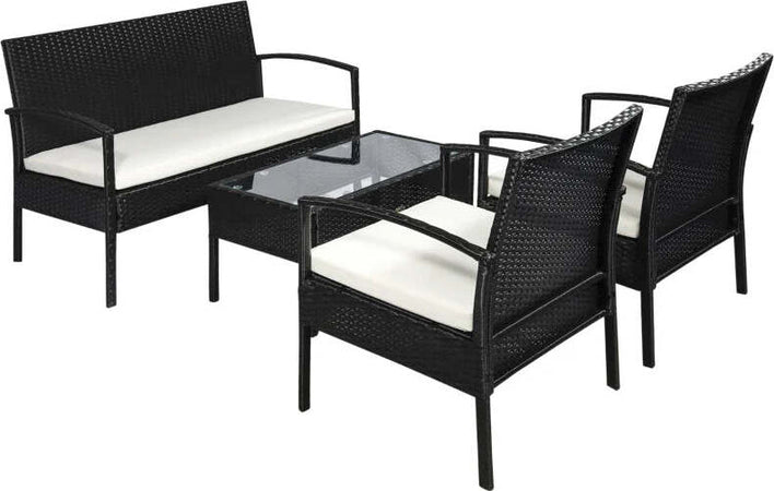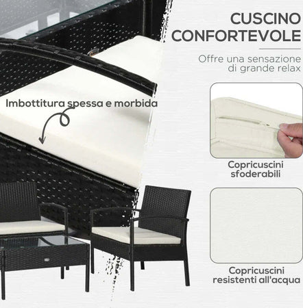 Set Mobili da Giardino in Rattan Sintetico Composto da 1 tavolino 2 poltrone e 1 divano a 2 posti Nero e Crema 863-024