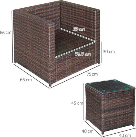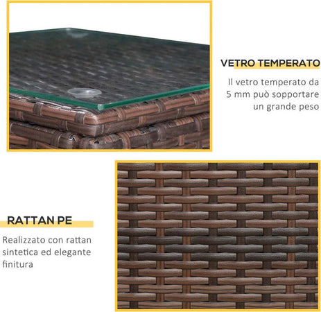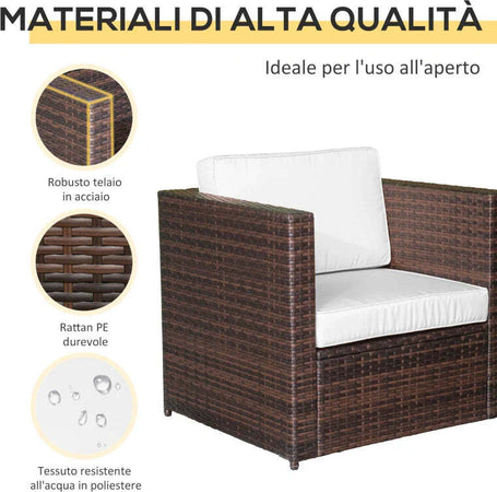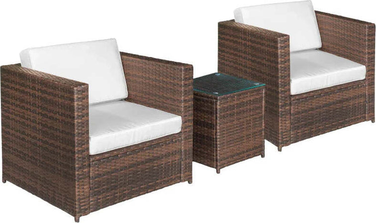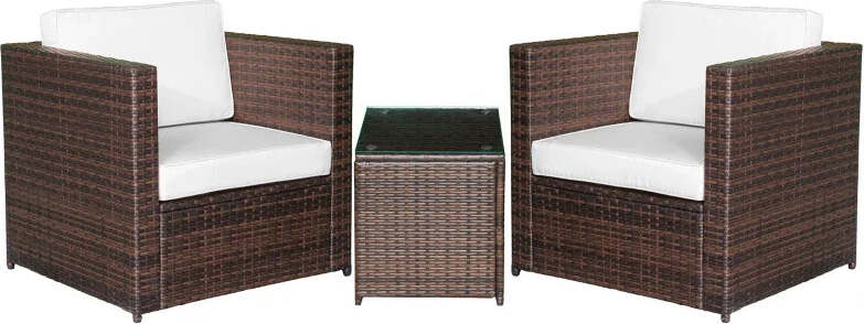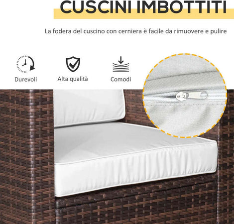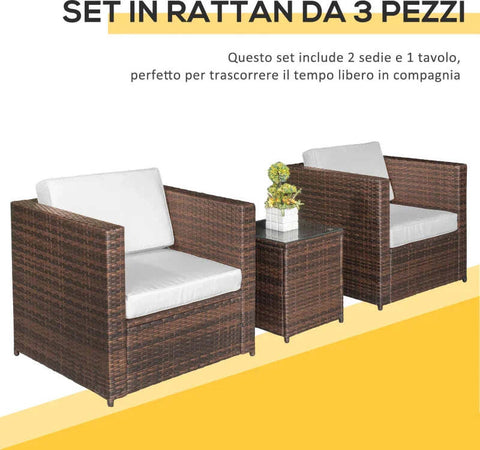 Set Mobili da Giardino Rattan PE da 3 Pezzi, 2 Poltrone da Esterno, Tavolino e Cuscini, Marrone 860-073BN