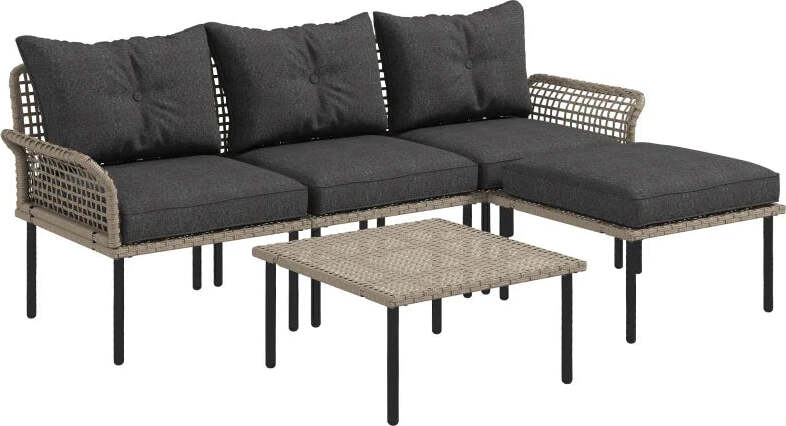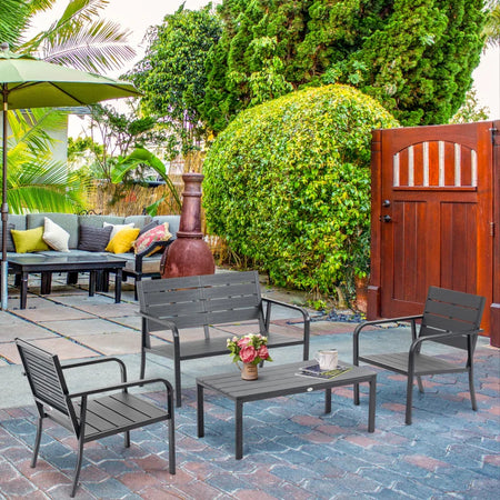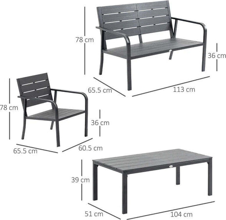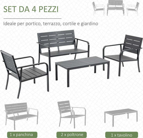 Set Salotto da Giardino da 4 Pezzi con Panchina a 2 Posti, 2 Poltrone e Tavolino, Grigio Scuro 84B-644