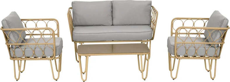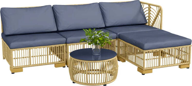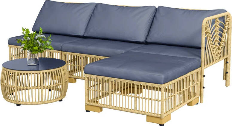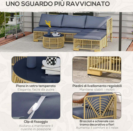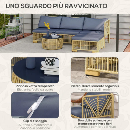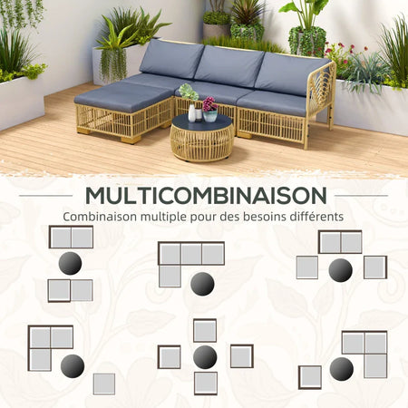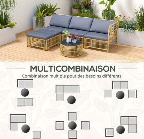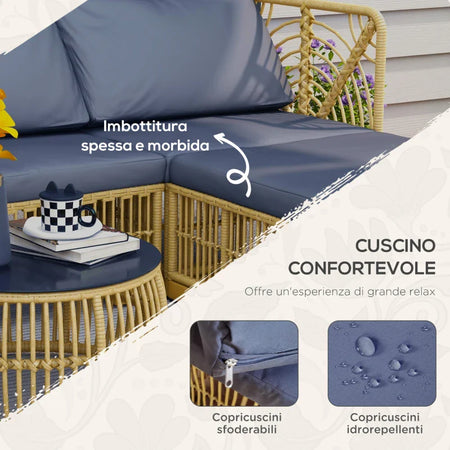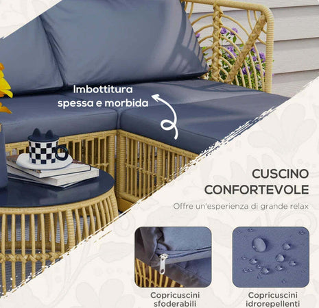 Set Salotto in Rattan da Giardino con Divano Modulabile, Cuscini e Tavolino da Caffè, Grigio 860-325V00GY