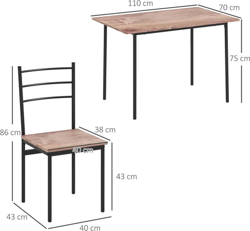 Set Tavolo e Sedie 5pz Salvaspazio Rettangolare 110x70x75 cm e 4 Sedie (Marrone e Nero)
