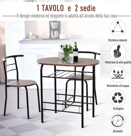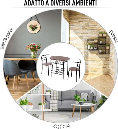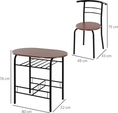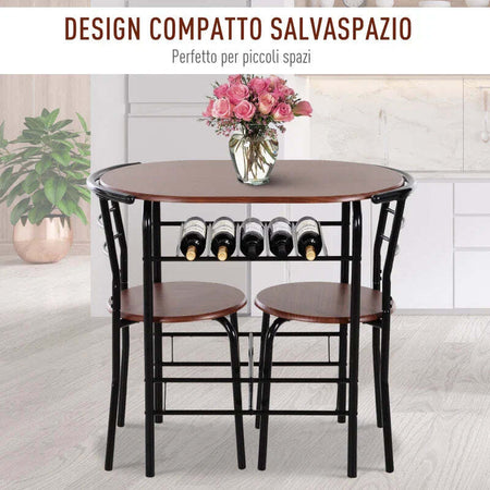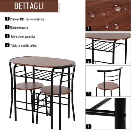 Set Tavolo Moderno con 2 Sedie per Sala da Pranzo, Set 3 Pezzi Mobili Salvaspazio da Cucina, Balcone, Ristorante o Bar, Marrone e Nero WQ2835-134WQ2