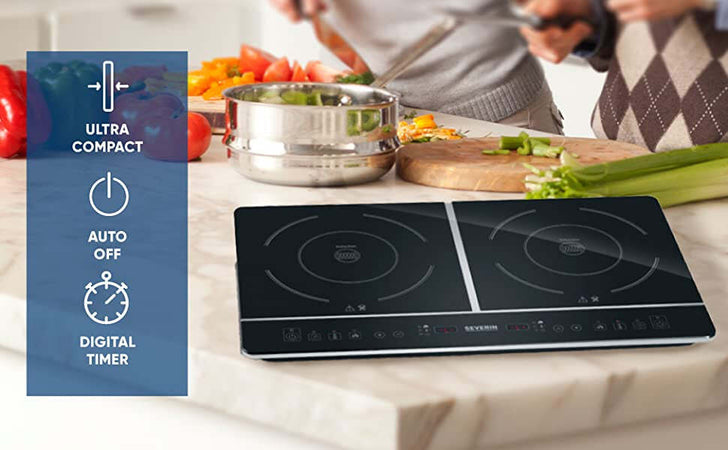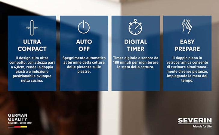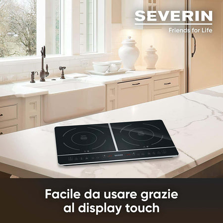 SEVERIN DK 1031 Doppia Piastra a induzione 3400W con Piano in Ceramica 10 livelli di potenza e timer, Piano cottura a Induzione