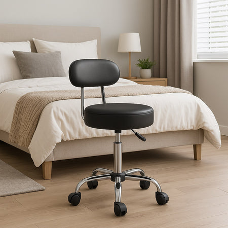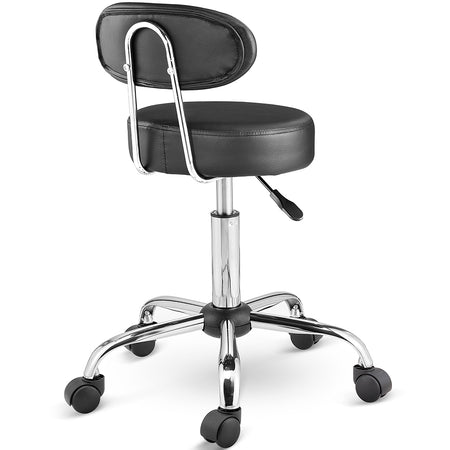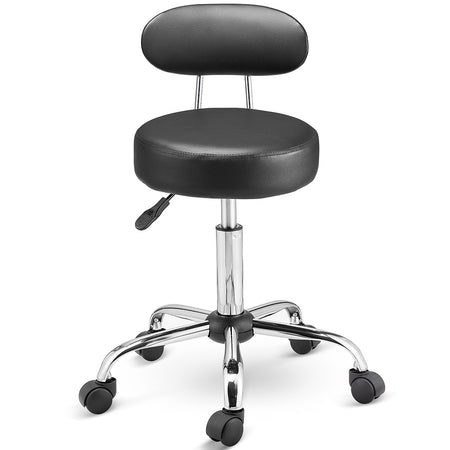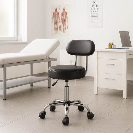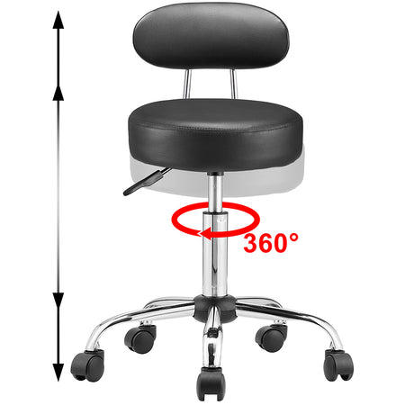 Sgabello Lavoro 5Ruote Girevole in Acciaio Schienale Alto Altezza Regolabile Nero