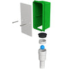 SIFONE A SECCO SCARICO CONDENSA DA INCASSO A MURO SENZA PORTAGOMMA A SCARICO FILETTATO MODELLO PITAGORA/COPERNICO ESTRAIBILE ED ISPEZIONABILE. IN POLIPROPILENE PP BIANCO E VERDE. APPLICAZIONE IDEALE PER IMPIANTI DI SCARICO CONDENSA. FUNZIONANTE CON SFERA GRAVITA',IN MODO CHE CHIUDA GLI ODORI. PRATICO BOX DA INCASSARE A MURO, CON POSSIBILITA' DI ESTRAZIONE COMPLETA DEL SIFONE PER OPERAZIONI DI MANUTENZIONI E PULIZIA. PIASTRA DI COPERTURA BIANCA, FILTRO FERMATUBO E GUARNIZIONE. CON SCARICO FILETTATO 1" Modello CON SCARICO FILETTATO - 1"