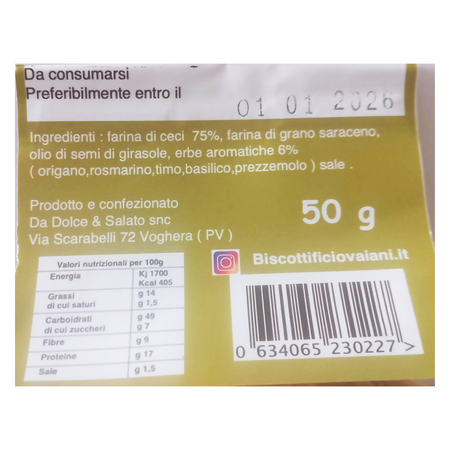 Snack salato proteico alle erbe 50g senza glutine e senza lievito con farina di ceci e farina di grano saraceno