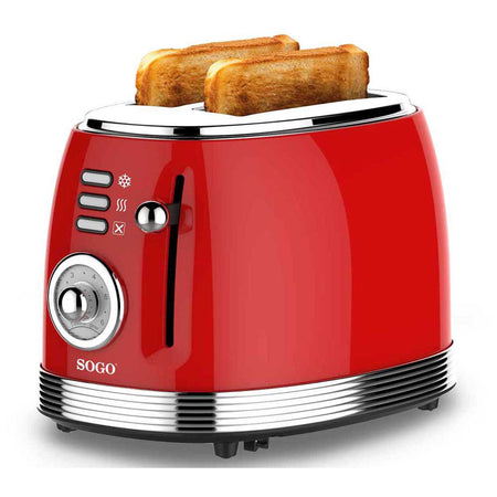 SOGO Tostapane 2 fette retrò / 850W / 6 livelli di temperatura / scongelamento e riscaldamento / rosso