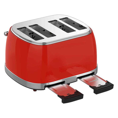 SOGO Tostapane 4 fette retrò / 1500W / 6 livelli di temperatura / scongelamento e riscaldamento / rosso