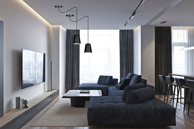 Sospensione 1 Luce Link In Acciaio Nero Cavo Lungo E Paralume Cono Nero E Bianco