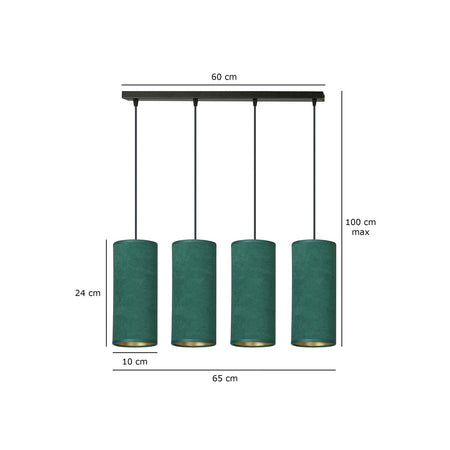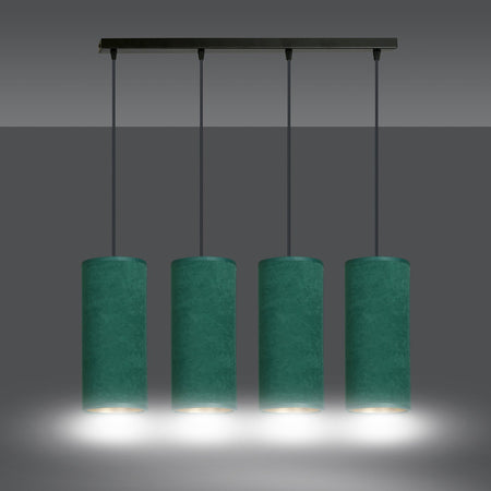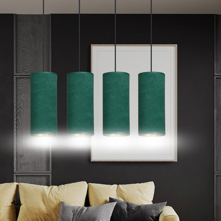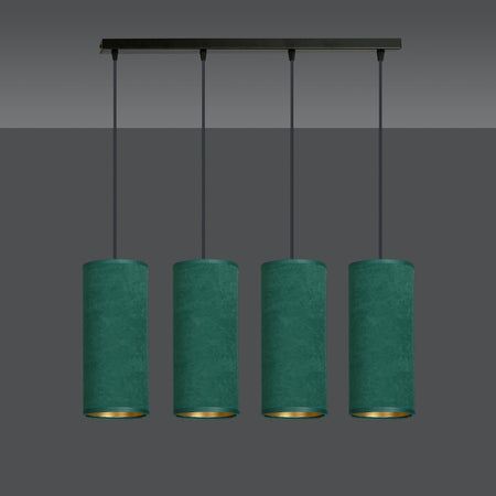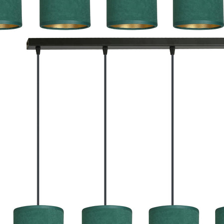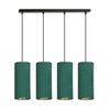 Sospensione 4 Luci Bente In Acciaio Nero E Paralumi Verde E Oro