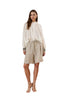 Camicia in mussola, polsino ricamato con borchie, collo alla coreana, chiusura con bottoni