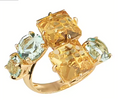 Anello da donna di Sovrani della collezione Fashion Mood. Anello parto in ottone con finitura in oro 18kt e con cristalli di colore verde, topazio madera, topazio citrino e colorado. Misura: 16. La referenza è: J9790