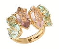 Anello da donna di Sovrani della collezione Fashion Mood. Anello aperto in ottone con finitura in oro 18kt e con cristalli di colore rosa, viola e verde. Misura: 16. La referenza è: J9781