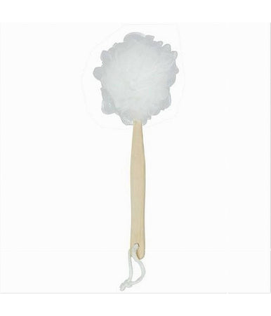 Spazzola Doccia Lava Schiena Spugna Rete Bianca Esfoliante Manico In Legno 79594