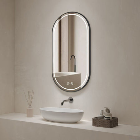 Specchio smart ovale YJ-2004BL con cornice nera in acciaio inox satinato 90x60 cm.