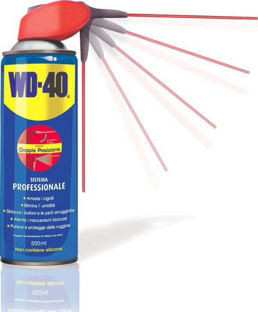 WD-40 è il lubrificante Pulitore, Sbloccante per eccellenza, utile per il controllo della corrosione, lubrificazione, pulizia e penetrazione. Ha la capacità di penetrare in spazi molto ristretti su tutti i tipi di metalli. Sebbene non essenzialmente un lubrificante puro, WD-40 viene regolarmente utilizzato per lubrificare tutti i macchinari e apparecchiature elettriche. WD-40 protegge il metallo dalla ruggine e corrosione, penetra parti bloccate o inceppati, sposta l'umidità, e lubrifica qualsiasi cosa. WD-40 è potente anche quando si tratta di grasso, sporcizia e altro. WD-40 è una miscela di prodotti chimici concentrati in sospensione in un distillato di petrolio ad alto grado. Non influenza capi di tessuti, gomme o plastiche.