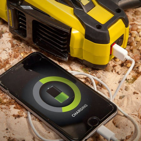 Con un'autonomia fino a 7 ore in bassa e 1 ora in alta, la batteria agli ioni di litio rimane in carica fino a 12 mesi senza ricarica. Questo riflettore include sia adattatori di carica ca e cc, che consente di ricaricare a casa o all'interno di un veicolo.