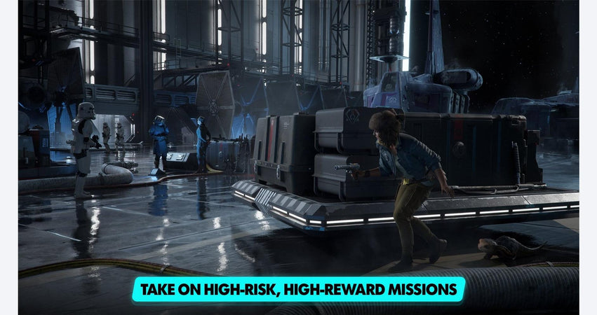Esplora mondi di ogni tipo con vivaci città e taverne. Sfreccia in sconfinati paesaggi planetari in sella al tuo speeder. Su ognuno di essi ti aspettano nuove avventure, sfide uniche e allettanti ricompense... se accetterai di correre il rischio.