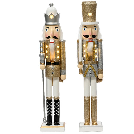 Statuetta decorativa "Soldatino schiaccianoci" natalizio oro e argento h 50 cm