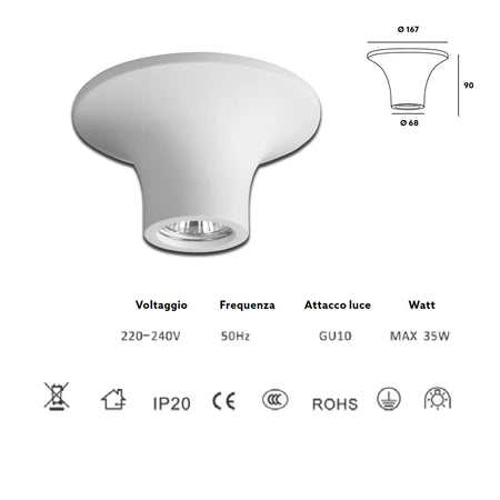 *STOCK* Portafaretto In Gesso Ceramico Cono 167x90x68mm 40W GU10 IP20